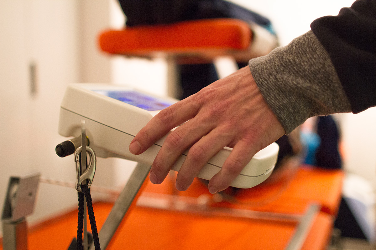 Dieses Therapiegerät dient zum vorsichtigen Auseinanderziehen (=Traktion) von Gelenken.